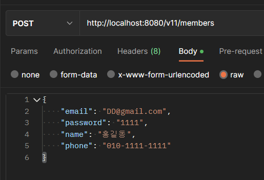 포스트 맨을 이용해서 USER 등록을 하였을 때에는 정상적으로 진행이 되었으나