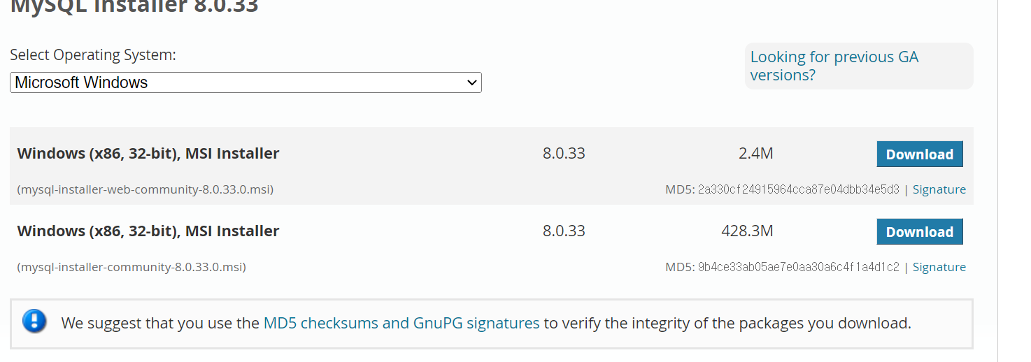 MySQL Community Server 클릭